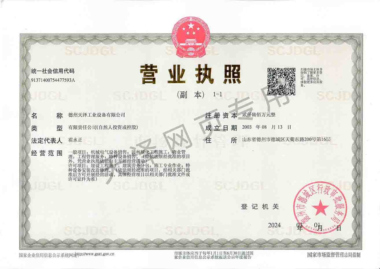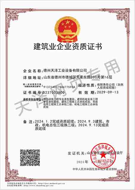 德州天澤工業(yè)設(shè)備有限公司成立于2003年(前身為德州天元集團天明工業(yè)設(shè)備安裝公司),經(jīng)過20多年的發(fā)展,現(xiàn)成長為擁有職工600余人,各類專業(yè)技術(shù)人員近300余人,年生產(chǎn)能力兩億元以上,以建筑機電安裝工程、消防設(shè)施安裝工程施工為主,集建筑工程施工、市政工程施工、建筑智能化工程施工、園林綠化工程施工、工程管理服務(wù)、物業(yè)管理、電氣機械設(shè)備銷售等多元化經(jīng)營于一體的綜合型企業(yè)。2005年,企業(yè)按照國際標準建立的質(zhì)量管理體系,通過了ISO質(zhì)量管理體系認證、環(huán)境管理體系認證、職業(yè)健康安全管理體系認證。施工工程遍布山東、河北、四川、江蘇等地,最具代表性的工程有:山東省德州市百腦匯資訊廣場機電安裝工程、德州經(jīng)濟開發(fā)區(qū)天元大廈機電安裝工程、陵城區(qū)人民醫(yī)院機電安裝工程、德州金魯班大廈機電安裝工程、河北故城金辰小區(qū)機電安裝工程、北川地震災(zāi)后援建工程等。多年來,公司始終堅持“以人為本,建精品工程,創(chuàng)行業(yè)品牌”的經(jīng)營理念,先后榮獲省(市)級泰山杯、天府杯、魯安杯等獎項,申報各種功法、多項專利。